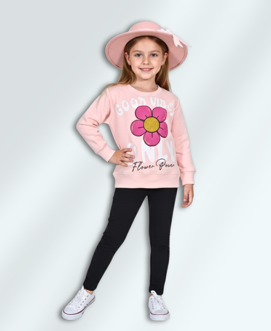 This Baby-Pink Sweatshirt features delicate embossed flower with glitter filling detailing, adding subtle texture and charm to your little girl's winter wardrobe. Crafted from soft, comfortable fabric, it ensures warmth without sacrificing comfort, making it an ideal choice for cooler days. Its gentle fit is designed to keep your child cozy and stylish, perfect for everyday wear or special outings.