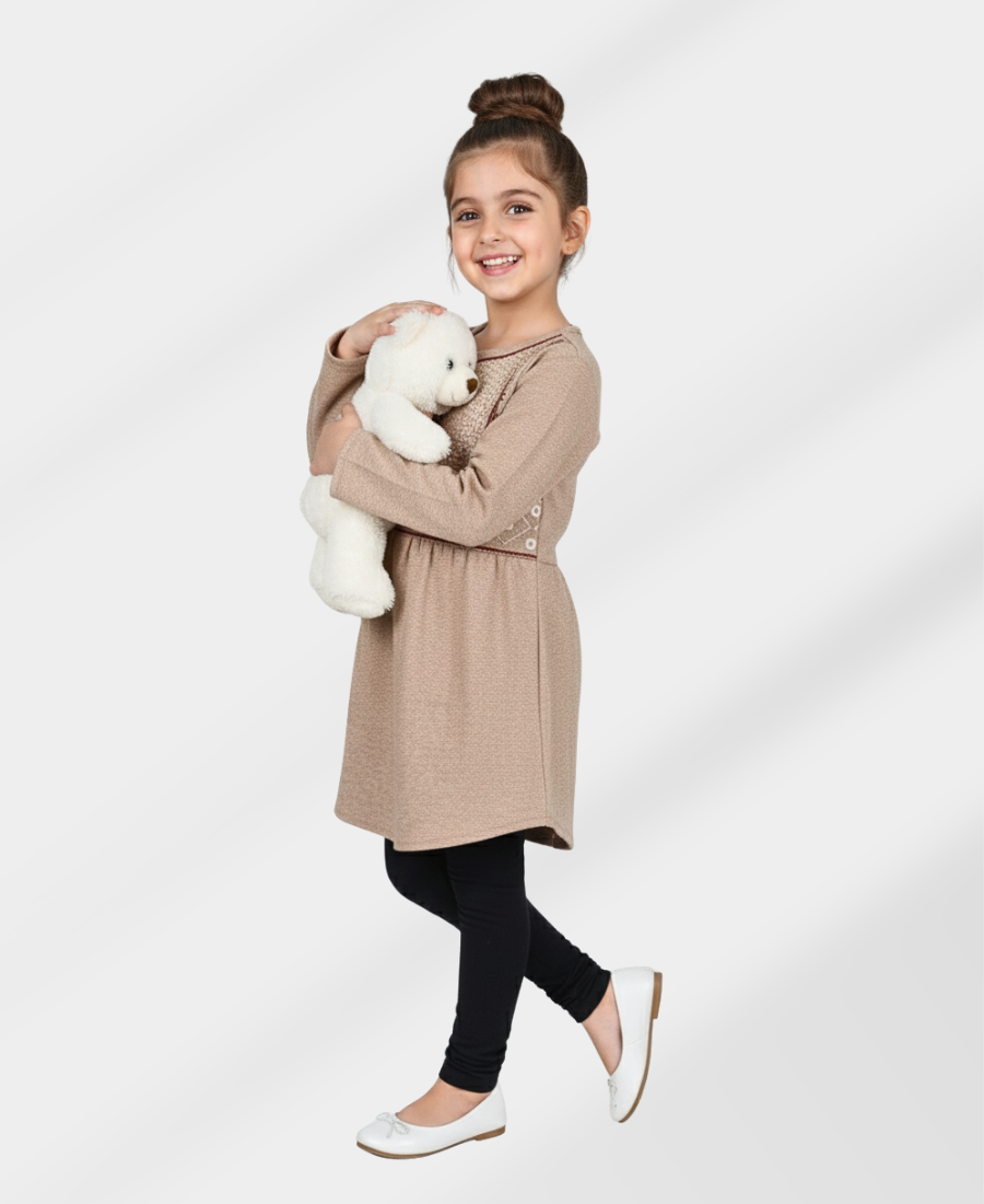 A little glam, a lot of comfort. This Skin Self-Print Embroidered Top features a attractive flared and two-buttons placket at the back. Finished with gentle gathers, it’s breathable and stylish; perfect for school, events, or twirling through everyday magic.